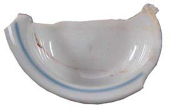 | 5c | wand binnen: cirkel, wand buiten: cirkel, boogjesrand, floraal motief, vogeltje, concentrische cirkels onderglazuur blauw en oranje, bovenglazuur goud |