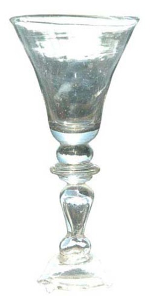 | 4b | tulp- of trompetvormig kelkglas met dikwandige bodem, massieve balusterstam met tweegeleding en schijfje, ook met luchtbel, schijfvormige voet, ook koepelvormig, met pontilmerk |