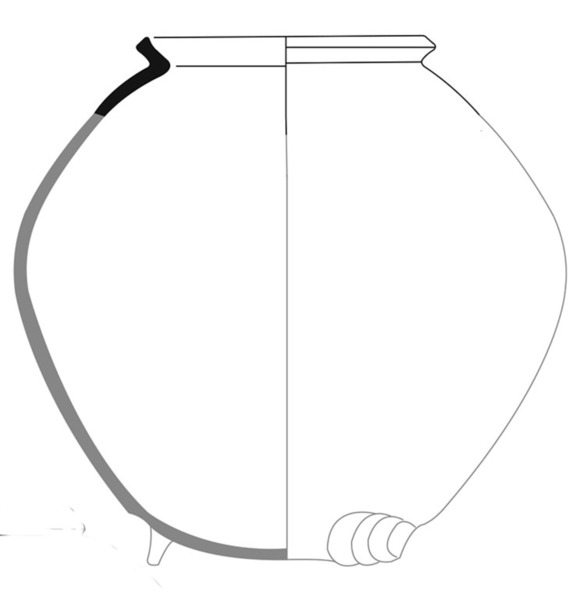 | 4b | bolle voorraadpot met hoge schouder, zonder hals, met driehoekig verdikte rand en deksel geul, lobvoeten |