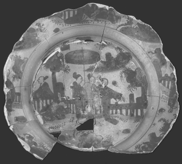 | 5c | vlag: afwisselend landschappen en Chinese personen; spiegel: vier Chinese personen in landschap met parasol inwendig: blauw |