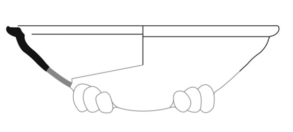 | 4b | bolle kom met ingesnoerde hals en vierkante rand, lobvoeten |
