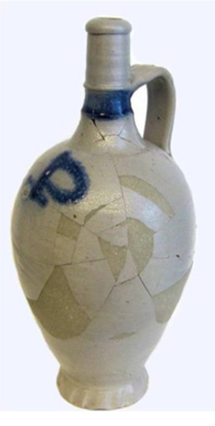 | 5c decoratie | op buik een blauwe 'P', op hals blauwe bies blauw |