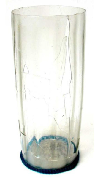 | 4b vorm | cilindrische beker met verticale ribben, zonder of met noppootjes, opgestoken bodem met pontilmerk |