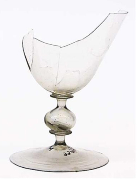 | 4b vorm | cilindrisch, conisch of trechtervormig glas met of zonder afgeronde bodem met holle balusterstam, met één of meer schijfjes, schijfvormige voet met pontilmerk |