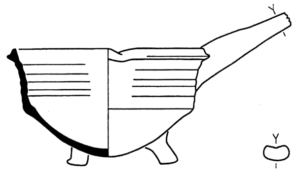 | 4b | bolle steelkom met knik bodem-wand en smalle kraagrand, poten |