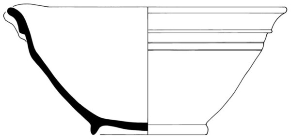 | 4b | wijde kom met hoge kraagrand en ribbels op overgang van wand naar rand, standring |