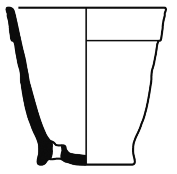 | 4b vorm | bloempot met knik onderin de zijwand, brede geribde kraagrand, standring |