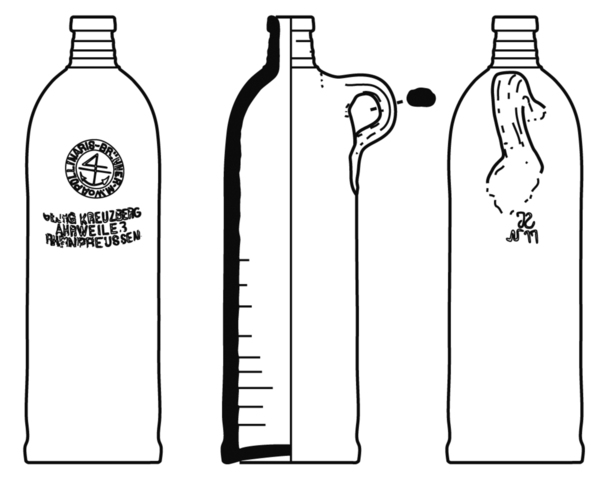| 4b | cilindrische fles met afgeronde schouder, korte cilindrische nek met verdikte lip, platte/holle bodem |