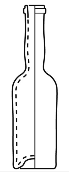 | 4b vorm | cilindrische tweedelig vormgeblazen wijnfles met lange hals, met draad om de lip, opgebolde bodem |