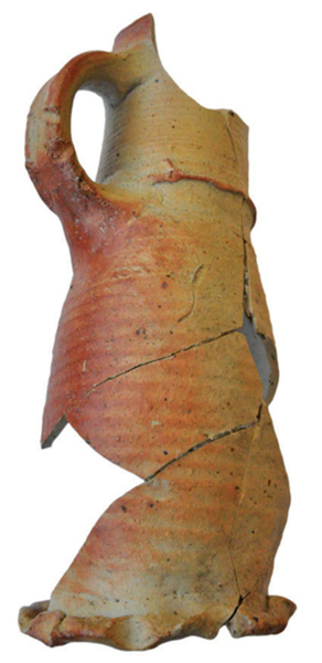 | 4b | lage bekervormige kan met kraag op de halsaanzet, iets verdikte hals, rechte rand, op standring |