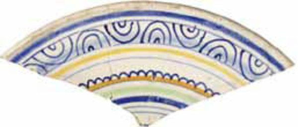 | 5c decoratie | in blauw, geel , oranje en groen: concentrische cirkels, centrale voorstelling ontbreekt inwendig: polychroom |