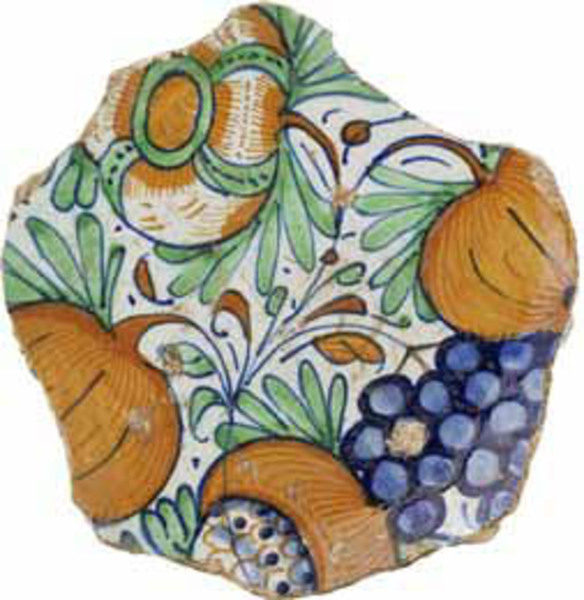 | 5c | druiven en granaatappels op de spiegel inwendig: polychroom |
