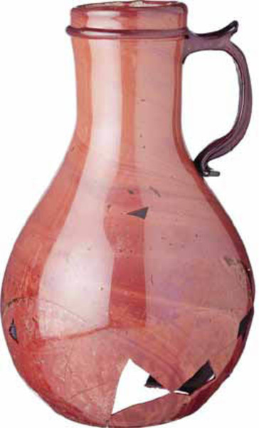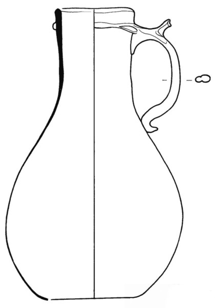 | 4b | bolvormige kan met cilindrische hals, oor, opgestoken bodem met pontilmerk |