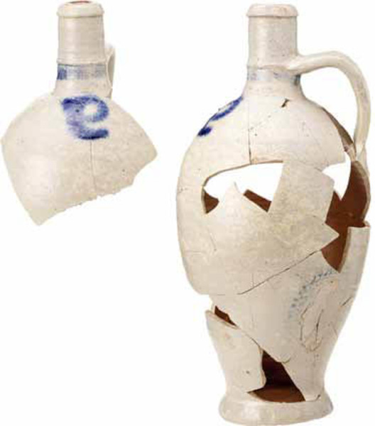 | 5d diversen | merk: P (P-kruik), gedeukt onder aan de wand |