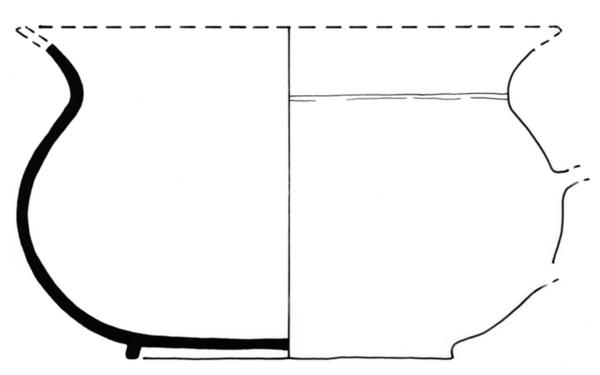 | 4b | gedrongen pispot met bolle buik, schuinstaande onverdikte afgeronde rand, één verticaal oor, standring |