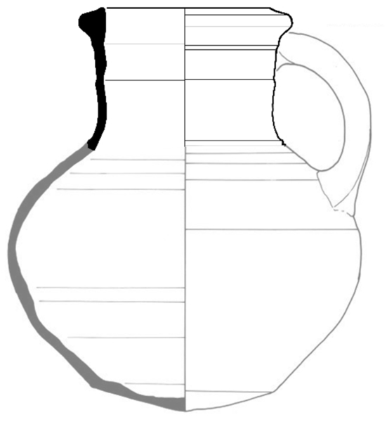 | 4b | bolle kan met cilindrische hals met ribbel, verdikte rand, lensbodem |
