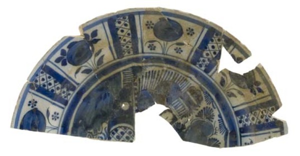 | 5c decoratie | spiegel: Chinese symbolen; afbeelding te gering voor beschrijving, vlag: Wan-Li indeling blauwe beschildering |