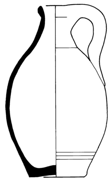 | 4b | hoge, peervormige kan met vloeiende overgang van buik naar schouder en licht uitstaande, verdikte rand, standvlak |