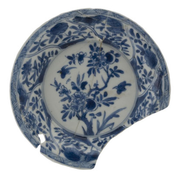 | 5c decoratie | in- en uitwendig florale motieven onderglazuur blauw |