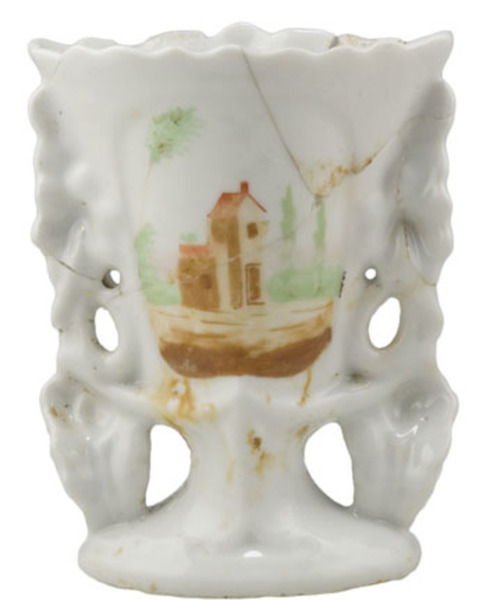 | 5c | in bruin en groen: huis met bomen polychroom (bovenglazuur) |