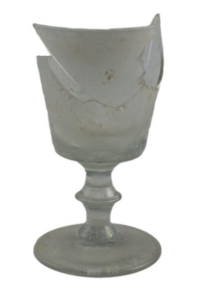 | 4b | trechtervormig, komvormig of cilindrisch kelkglas, ook met uitstaande lip, massieve stam met knoop, dikwandige schijfvormige voet |