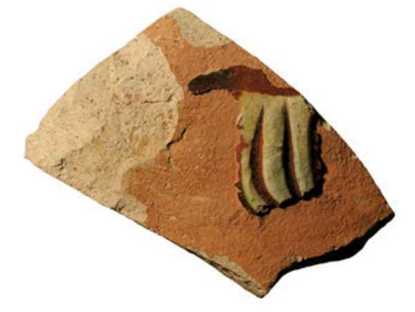 | 5c | rode sliblaag op witte ondergrond met daarover weer een witte sliblaag met ingekraste versiering |