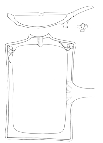 | 5c decoratie | op beide hoeken aan de schenkzijde een klavertje drie (gevormd door drie duimindrukken en een ingekrast steeltje) |