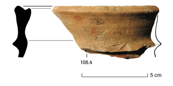 | 4b | bolle pot met manchetrand, lensvormige bodem |