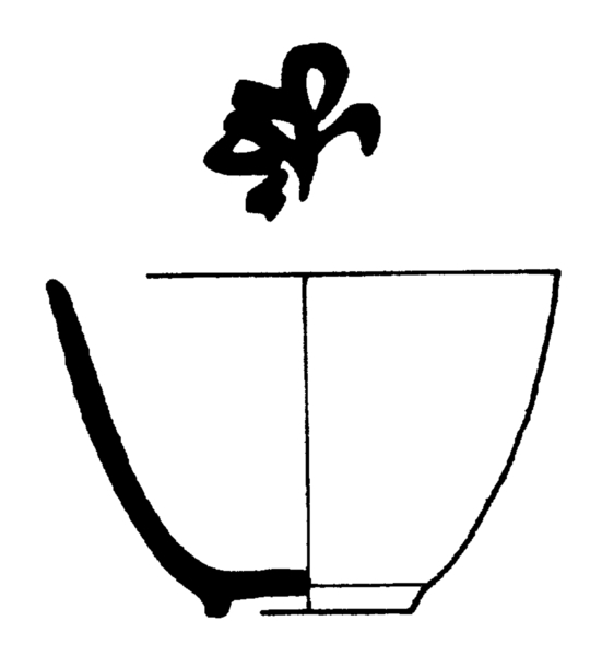 | 5c | inwendig: spiegel: merkteken, blauw; uitwendig: bloemdecor, blauw inwendig: blauw |