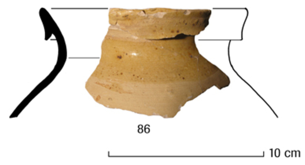 | 4b | bolle pot met hoge schouder en hoge hals met driehoekig verdikte (omgeslagen) rand, lensbodem met of zonder lobvoeten |