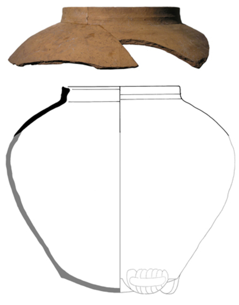 | 4b | brede pot met hoge schouder zonder hals, manchetrand, lobvoeten |