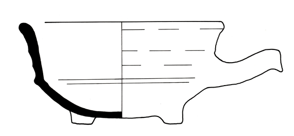 | 4b vorm | vuurtest met ronde bak, scherpe knik bodem-wand, iets uitwijkende wand, poten |