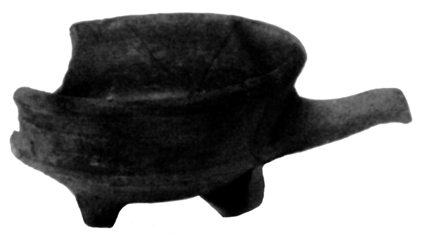 | 4b | vuurtest met ronde bak, scherpe knik bodem-wand, iets uitwijkende wand, poten |
