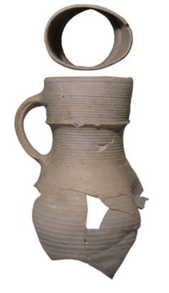 | 4b | bolle kan met ribbel ter hoogte ooraanzet en ribbel op hals, op standring |
