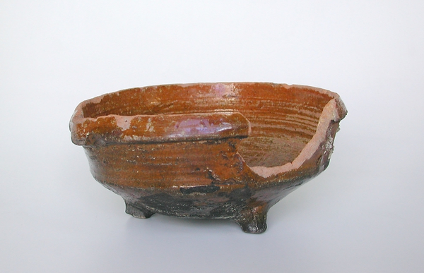 | 4b | bolle steelkom met knik bodem-wand en smalle kraagrand, poten |