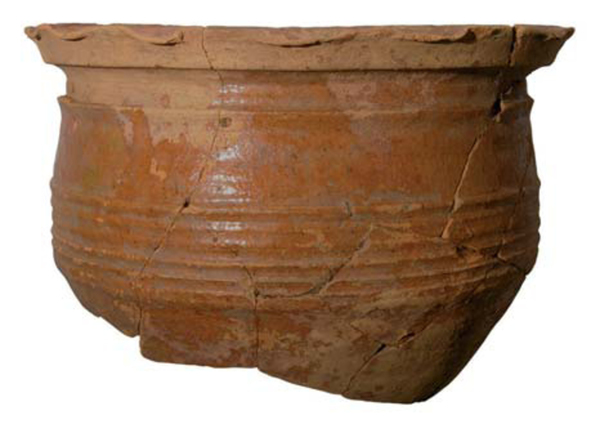 | 4b | wijdmondige biconische kom met afgeronde buikknik, ribbel op overgang van schouder naar rand, gelobde kraagrand, lobvoeten |