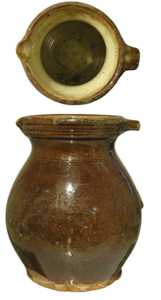 | 5b afwerking (kleur/glazuur) | loodglazuur, uitwendig met mangaanoxide |