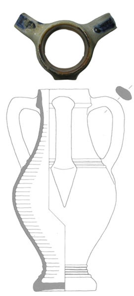 | 4b | hoge, peervormige drieoren kruik/beker met kraagrand, standvoet |