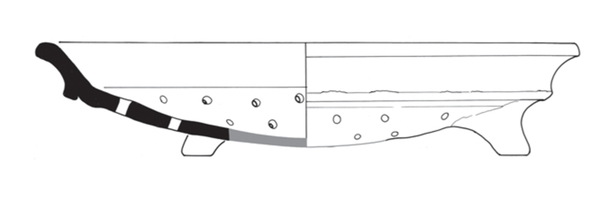 | 4b vorm | bolle lekschaal met scherpe knik bodem-wand, uitstaande wand met afgeronde rand, poten |