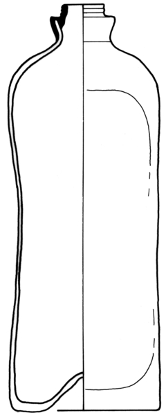 | 4b vorm | hoge vierzijdige fles, groter dan 13 cm, met korte hals, standvlak op licht opgestoken bodem met pontilmerk |