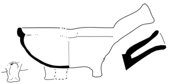 | 4b | bolle steelkom, kleine geknikte rand met dekselgeul, poten |
