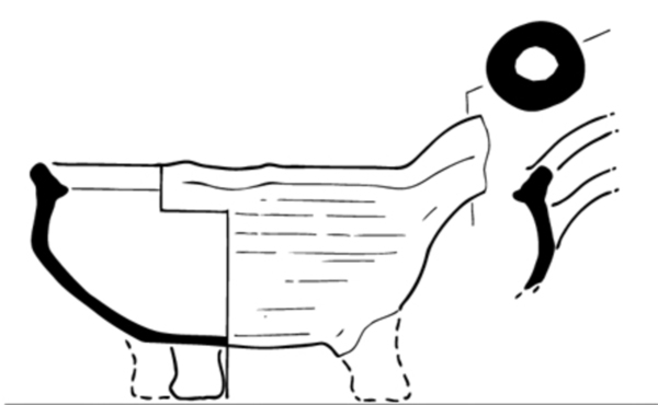 | 4b | bolle steelkom, kleine geknikte rand met dekselgeul, poten |