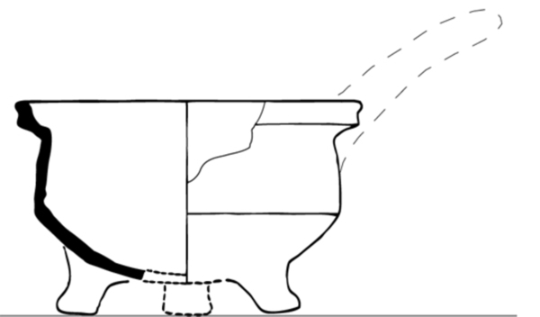 | 4b | steelkom met scherpe knik bodem-wand, kraagrand met brede dekselgeul, poten |