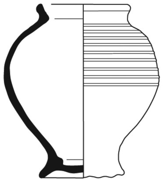| 4b vorm | bolle beker met hoge schouder en korte, licht uitstaande rand, standring |