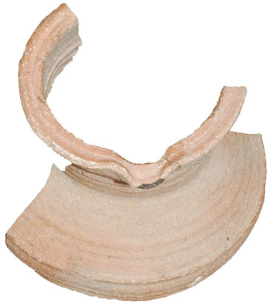 | 4b | kan met afgeronde buik overgaand in hals met ribbel op halsaanzet en verdikte, vanboven afgeplatte rand, standring |