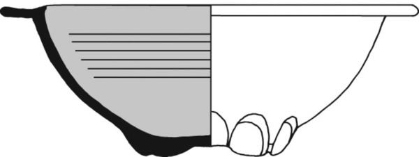 | 4b | bolle kom met horizontaal uitstaande rand, vlakke bodem met uitgeknepen standlobben |