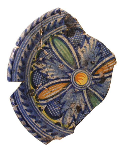 | 5c | gestileerd bloemmotief binnen kabelrand polychrome beschildering |
