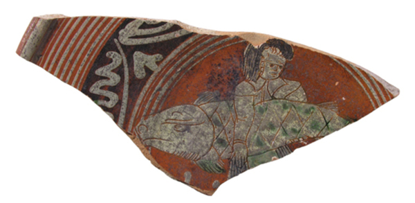 | 5c | ringeloorversiering; op vlag: concentrische cirkels en ornamentaal decor, op spiegel: man met vis |