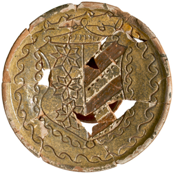 | 5c | graffito decoratie: wapenschild met daaromheen golvende lijnen |