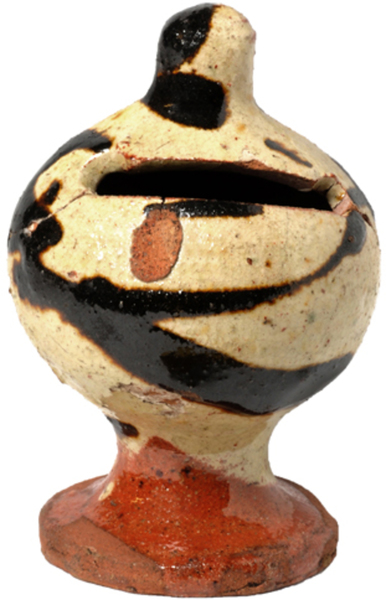 | 4b | ui-vormige spaarpot met spitse bovenzijde, hoge (holle) standvoet |